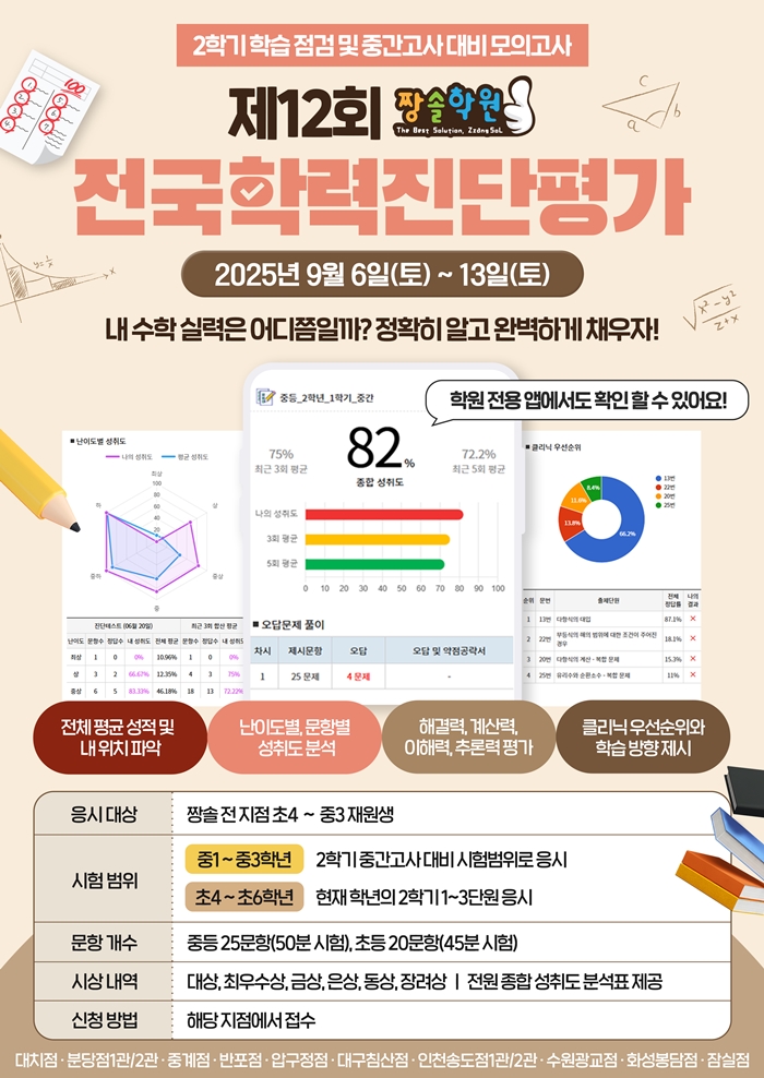 제 12회 짱솔학원 전국학력진단평가